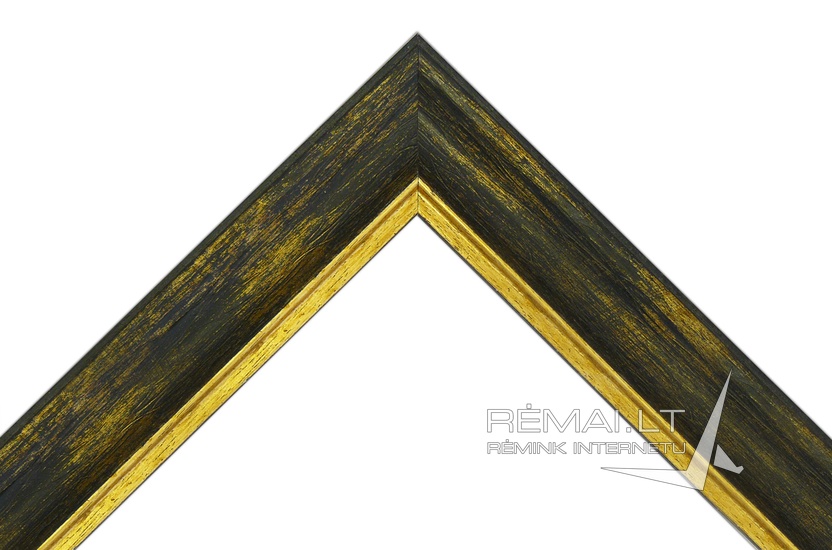 Stilingas, juodas su aukso atspalviu, klasikinis rėmas. Plataus, įgaubto profilio. Rėmo paviršius turi švelnų sendinimo efektą, padengtas aukso dulkių sluoksniu. Turi natūralios medienos faktūrą, linijas ir patamsėjimus. Vidinis kraštas puoštas spindinčia auksine juostele, kuri suteikia rėmui lengvumo ir elegancijos.
