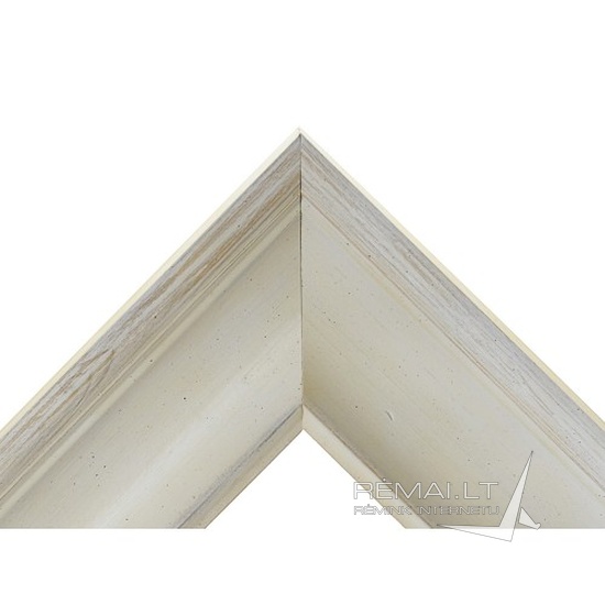 Platus, įgaubto profilio, gelsvai baltos spalvos medinis rėmas, kuriame dera modernus minimalumas ir klasikinis siluetas. Rėmo paviršiuje matoma natūrali medienos faktūra.