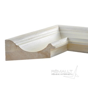 Platus, įgaubto profilio, gelsvai baltos spalvos medinis rėmas, kuriame dera modernus minimalumas ir klasikinis siluetas. Rėmo paviršiuje matoma natūrali medienos faktūra.