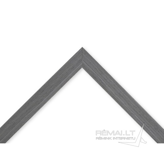 Šiuolaikiškas minimalistinio dizaino pilkas, matinis medinis rėmas. Lygiu paviršiumi, su natūralios medienos faktūra. Siauro, gilaus profilio rėmas puikiai tinka rėminti drobėms su porėmiu.