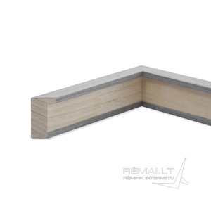 Šiuolaikiškas minimalistinio dizaino pilkas, matinis medinis rėmas. Lygiu paviršiumi, su natūralios medienos faktūra. Siauro, gilaus profilio rėmas puikiai tinka rėminti drobėms su porėmiu.