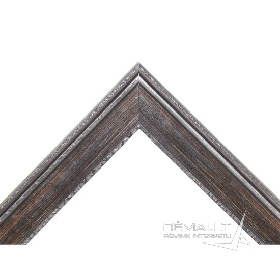 Tamsiai rudas su bronziniu blizgesiu medinis rėmas, dekoruotas sidabrinėmis kraštinėmis. Vidutinio pločio, lygus ir gilus profilis puikiai tinka rėminti drobėms su porėmiu.