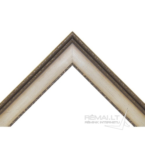 Gelsvas su auksiniu blizgesiu medinis rėmas, dekoruotas tamsaus aukso spalvos kraštinėmis. Vidutinio pločio, lygus ir gilus profilis puikiai tinka rėminti drobėms su porėmiu.