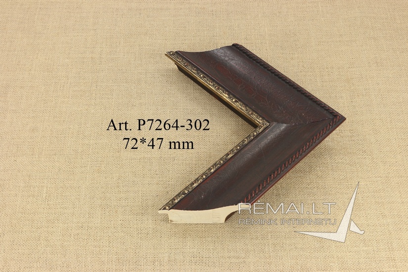 itin elegantiškas raudonojo vyno spalvos medinis rėmas su plonomis ornamentinėmis juostelėmis ties kraštinėmis ir sendintu paviršiumi. Platesnio, įgaubto profilio rėmas.