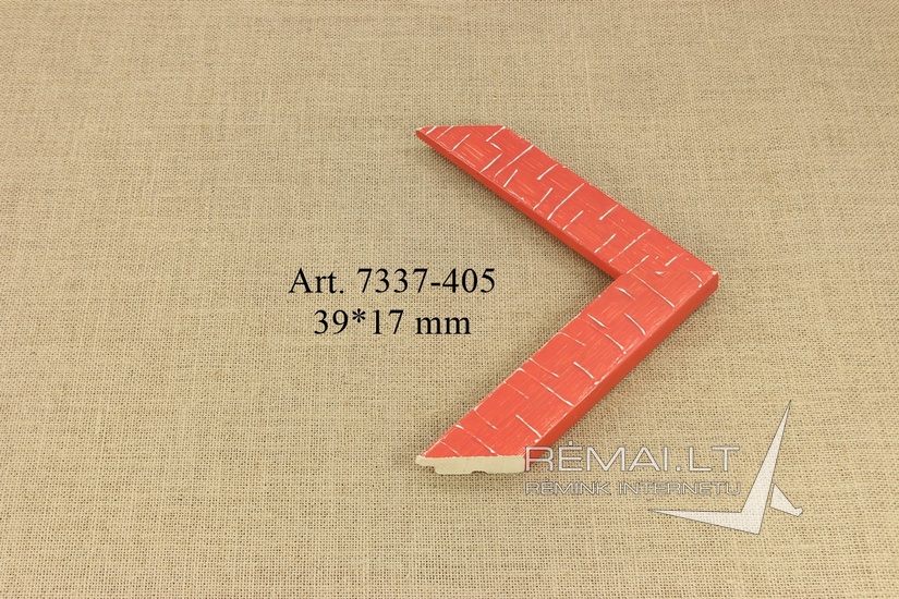Žaismingas raudonas lygaus profilio medinis rėmas su baltais brūkšneliais.
