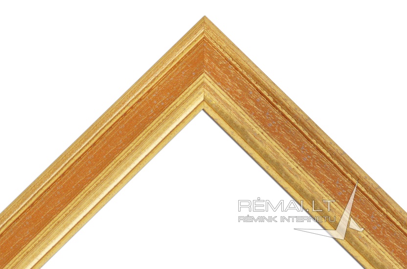 Prabangus ir itin spindintis persiko ir aukso spalvų derinio rėmas. Plataus, klasikinio profilio. Sendinto efekto rėmo paviršius gausiai puoštas aukso dulkių sluoksniu. Šis rėmas suteiks elegancijos Jūsų pasirinktam meno kūriniui.