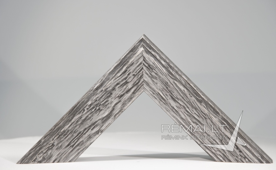 Sendinto efekto, pilkšvo atspalvio, matinis rėmas. Matinis rėmo paviršius turi natūralios medienos faktūrą, matomi naturaliam medžiui būdingi patamsėjimai ir linijos.
