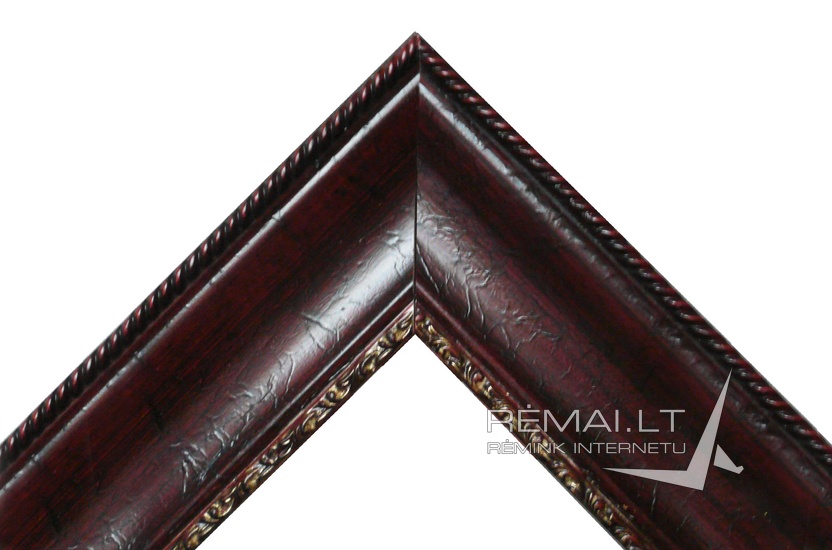 Ornamentinis plataus profilio tamsus rudas klasikinio stiliaus medinis rėmelis.