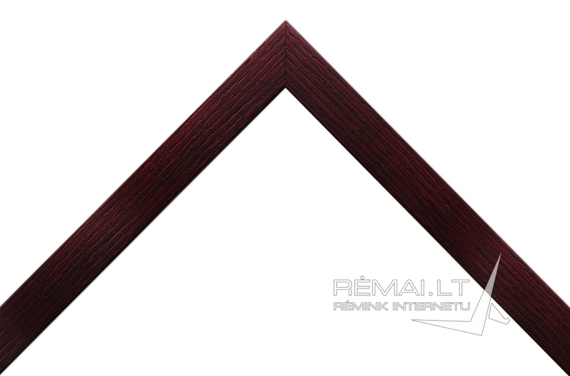Baklažano spalvos, klasikinio stiliaus rėmas. Siauro ir lygaus profilio. Išskirtinumo rėmui suteikia natūralaus medžio faktūros paviršius - grublėtas, raižytas.