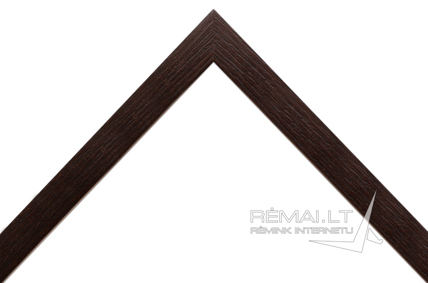 Tamsiai rudos spalvos, klasikinio stiliaus rėmas. Siauro, lygaus, gilesnio profilio. Išskirtinumo rėmui suteikia natūralaus medžio faktūros paviršius - gruoblėtas, raižytas.