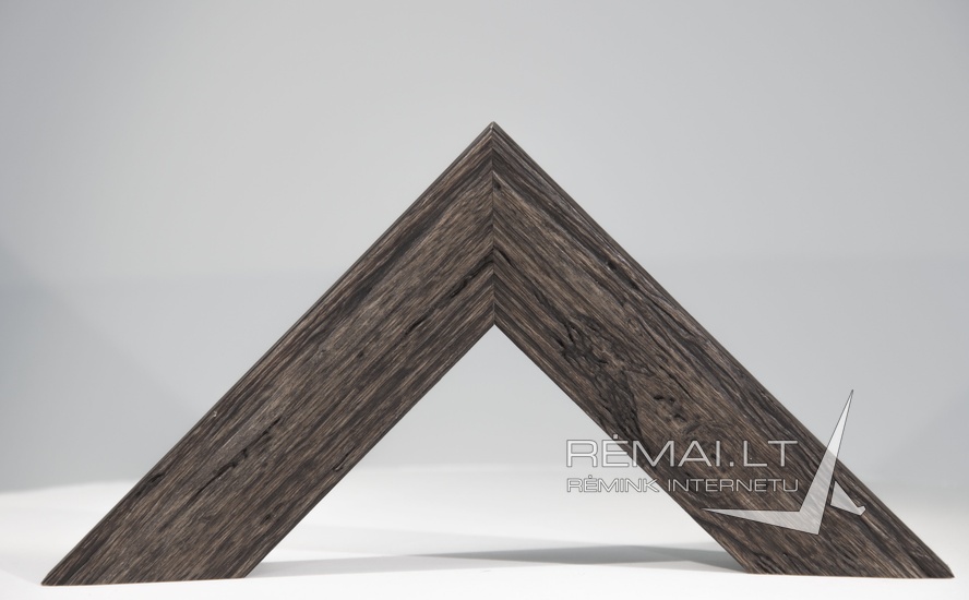 Sendinto efekto, rudo atspalvio medinis rėmas. Matinis rėmo paviršius turi natūralios medienos faktūrą, matomi naturaliam medžiui būdingi patamsėjimai ir linijos.