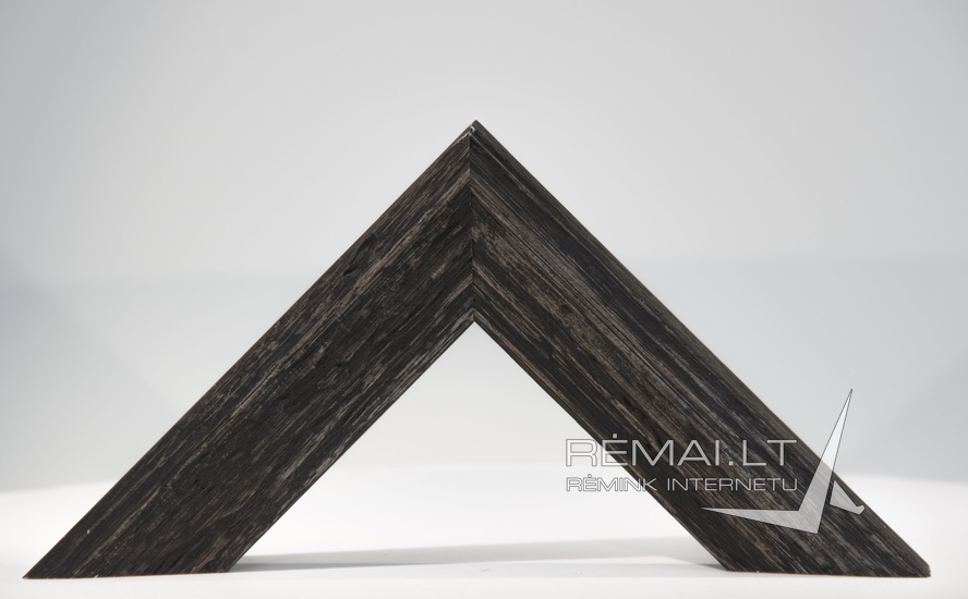 Sendinto efekto, tamsiai rudas medinis rėmas. Matinis rėmo paviršius turi natūralios medienos faktūrą, matomi naturaliam medžiui būdingi pašviesėjimai ir linijos.