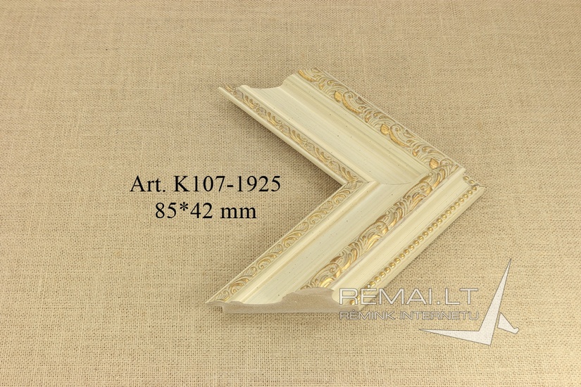 Platus klasikinis dramblio kaulo spalvos plastikinis rėmas su auksiniais ornamentais.