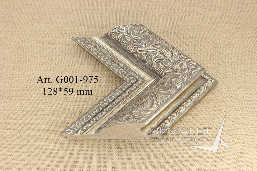 Prabangus klasikinis sendinto stiliaus itin plataus, įgaubto profilio plastikinis sidabrinės spalvos rėmas su ornamentais.