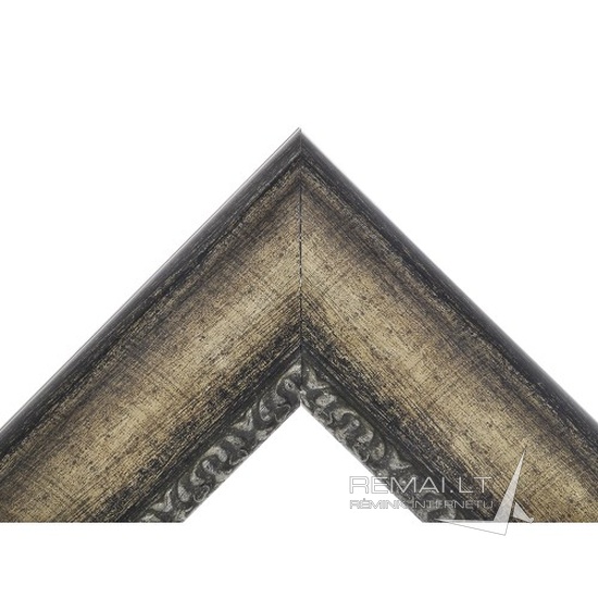 Klasikinio stiliaus plastikinis rėmelis su bronziniu blizgesiu ir puošnia ornamentine juosta ties vidine kraštine.