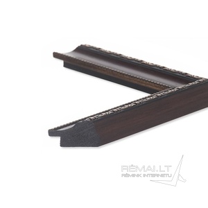 Tamsiai rudas plastikinis rėmas, tinkamas paveikslams, grafikos kūriniams. Su ornamentais.