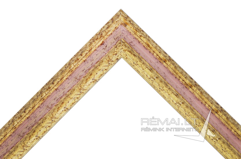 Prabangus, raštuotas, aukso ir rožinės spalvų rėmas. Rėmo paviršius dekoruotas tamsiai rudais egzotiniais raštais. Vidinė rėmo juosta romantiškos, švelniai rožinės spalvos. Rėmas suteiks egzotikos ir prabangos Jūsų meno kūriniui.