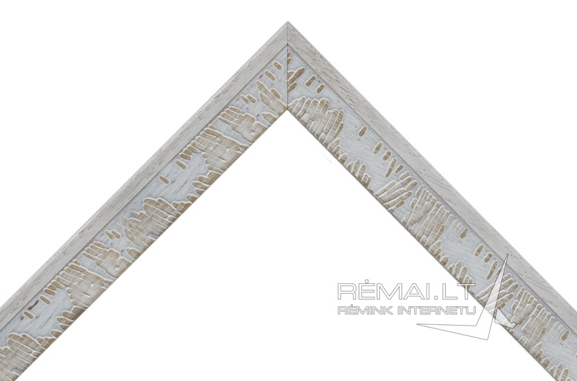 Modernus siauro profilio ornamentinis baltai pilkšvas medinis rėmelis.