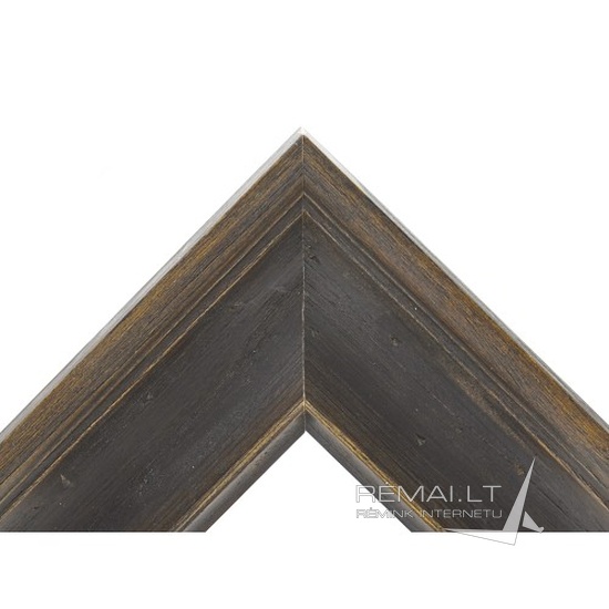 Platus, įgaubto profilio, sodrios rudos spalvos medinis rėmas, kuriame dera modernus minimalumas ir klasikinis siluetas. Rėmo paviršiuje matoma natūrali medienos faktūra.