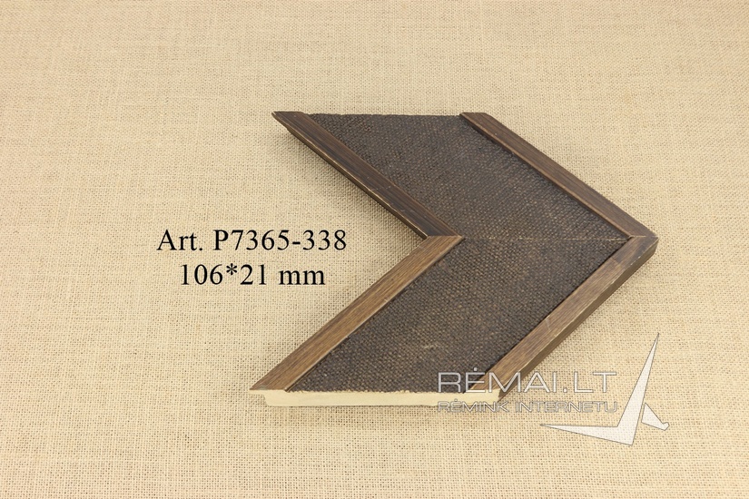 Platus minimalus, tačiau originalus tamsiai rudos spalvos medinis rėmas su drobės faktūra ir iškiliomis juostomis su natūralios medienos faktūra ties kraštinėmis.