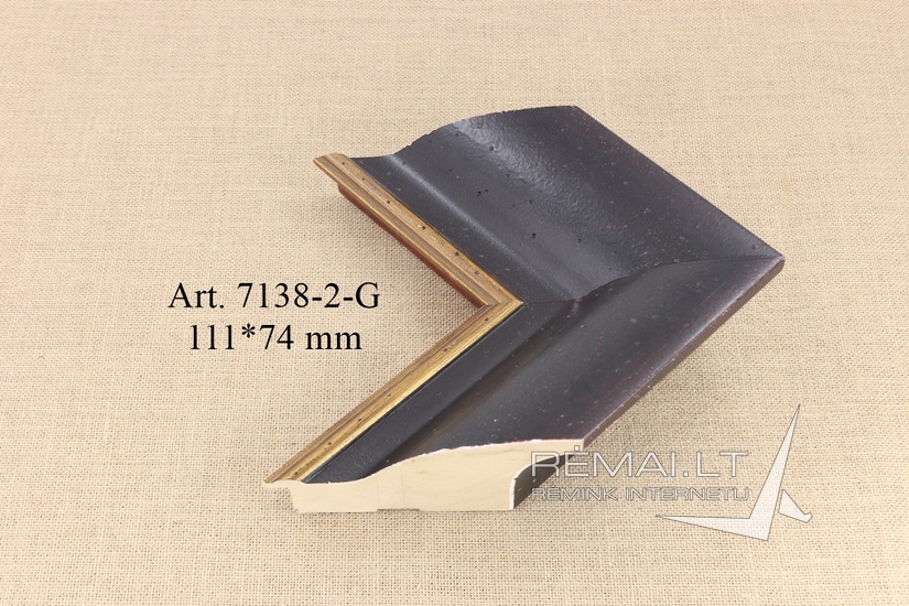 Juodas klasikinio stiliaus plataus, įgaubto profilio medinis rėmas su auksine juostele ir smulkių taškelių faktūra.