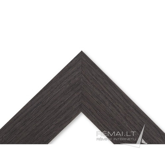 Šiuolaikiškas minimalistinio dizaino medinis rėmas. Juodos spalvos, matinis. Vidutinio pločio, lygaus profilio rėmas su natūralios medienos faktūra.