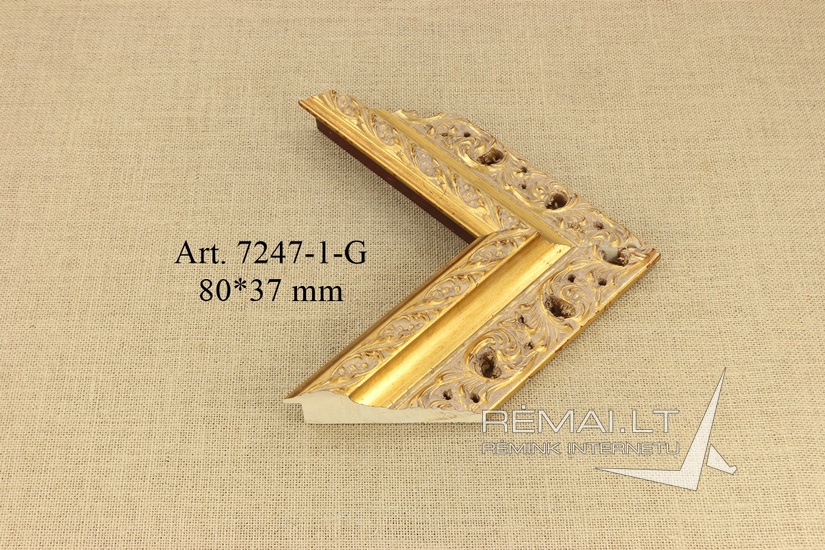 Prabangus ir skoningas klasikinio sendinto stiliaus platus auksinis medinis rėmas su augalinių motyvų ornamentais ir kiaurymėmis.