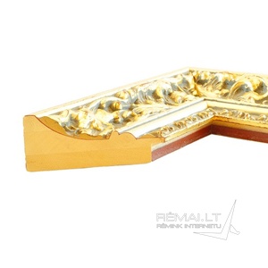 Prabangus ir puošnus sendinto klasikinio stiliaus auksinės spalvos medinis rėmas. Plataus, įgaubto profilio rėmas, dekoruotas augalinių motyvų ornamentais.