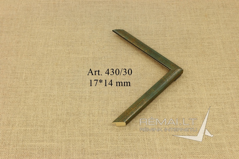 Siauras sodrios žalios spalvos šiek tiek išgaubto profilio medinis rėmas. Paviršiaus spalva nevientisa, o mirganti persidengiančiomis tamsiai žalia ir tamsia auksine spalvomis. Puikiai tinka rėminti fotografijas.