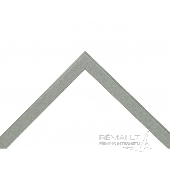 Modernus, subtiliai tviskančios metalo spalvos, raižyto paviršiaus rėmas. Siauro lygaus profilio.