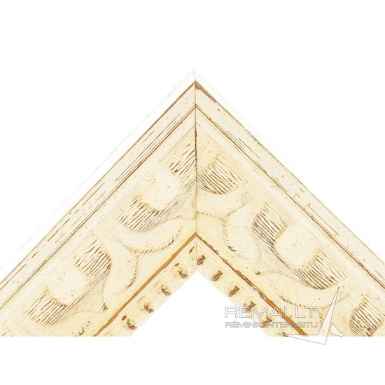 Siauro profilio ornamentinis prabangus sendintas šviesus baltas medinis rėmelis.