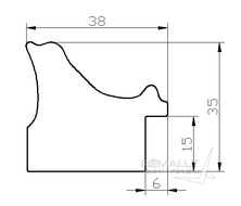 Ornamentinis siauro profilio auksinis klasikinio stiliaus medinis rėmelis.