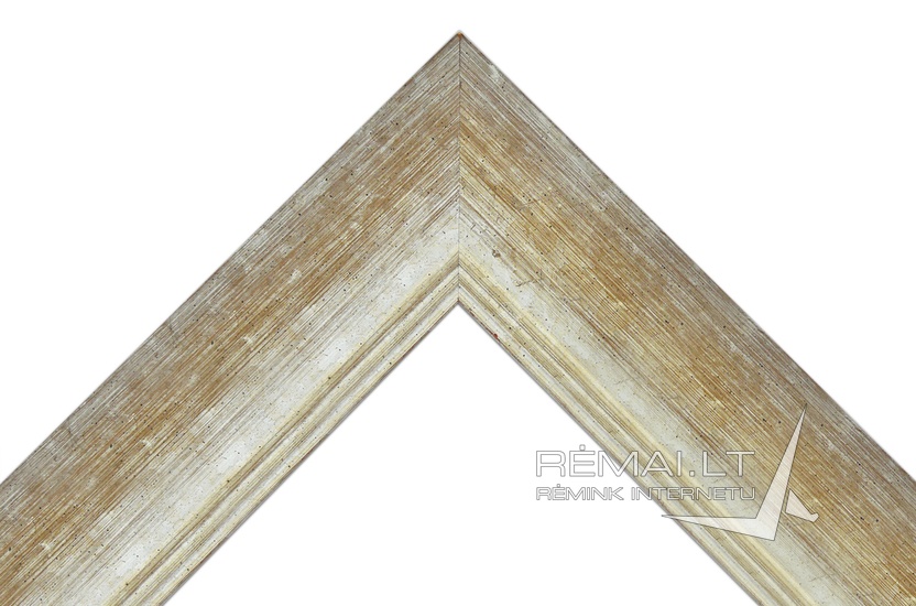 Elegantiškas, sendinto stiliaus, matinės sidabro spalvos rėmas. Plataus, išgaubto profilio. Visas rėmas tarsi padengtas sidabro dulkių sluoksniu ir natūraliam medžiui būdingais tamsiais taškeliais ir linijomis. Sukuriamas įspūdis tarsi pro sidabro šydą bando "prasiveržti" ankstesnis rudos spalvos dažų sluoksnis. Vidinis kraštas banguotas, tai suteikia rėmui lengvumo įspūdį. Šio stiliaus rėmas suteiks senovės prabangos Jūsų pasirinktam meno kūriniui.