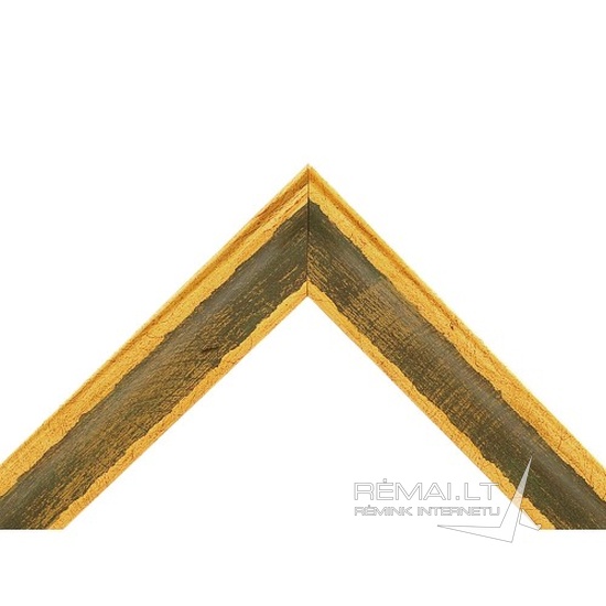 Provanso stiliaus siauro profilio žalsvai auksinis rendintas medinis rėmelis.