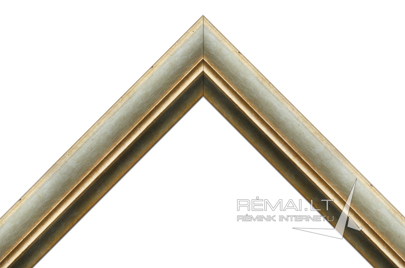 Klasikinis siauro profilio žalsvai auksinis šviesus medinis rėmelis.