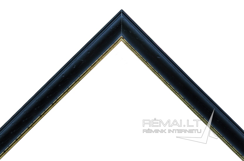 Klasikinis siauro profilio juodas medinis rėmelis, paauksuotu krašteliu.
