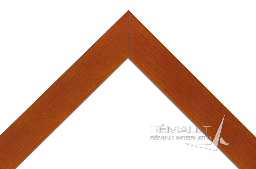 Tamsiai oranžinės spalvos, klasikinio stiliaus rėmas. Plataus profilio. Išskirtinumo rėmui suteikia natūralaus medžio faktūros paviršius - gruoblėtas, raižytas.