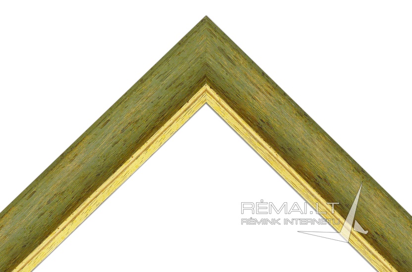 Stilingas, žalsvas su aukso atspalviu, klasikinis rėmas. Plataus, įgaubto profilio. Rėmo paviršius turi švelnų sendinimo efektą, padengtas aukso dulkių sluoksniu. Turi natūralios medienos faktūrą, linijas ir patamsėjimus. Vidinis kraštas puoštas spindinčia auksine juostele, kuri suteikia rėmui lengvumo ir elegancijos.