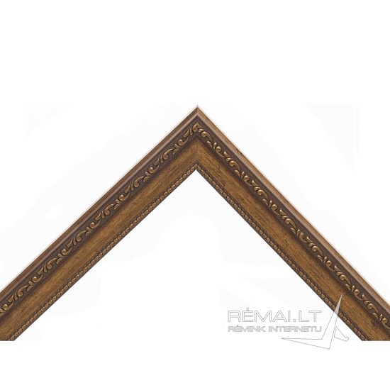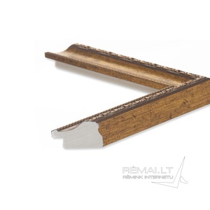 Auksinis plastikinis rėmas, tinkamas paveikslams, grafikos kūriniams. Su ornamentais.