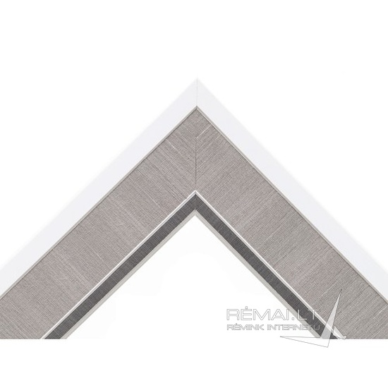 Baltai pilkas plastikinis rėmas, su tamsiai pilku, sidabriniu krašteliu, tinkamas veidrodžiams ir paveikslams.