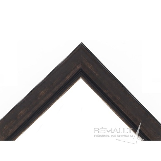 Rudas plastikinis rėmas, su medžio imitacija, tinkamas paveikslams, grafikos kūriniams, nuotraukoms. Su sidabrine juostele.