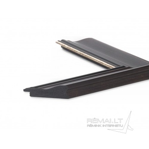 Rudas plastikinis rėmas, su medžio imitacija, tinkamas paveikslams, grafikos kūriniams, nuotraukoms. Su sidabrine juostele.