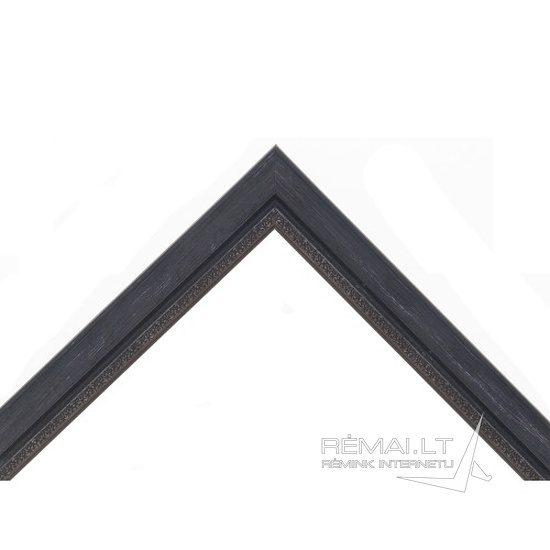 Juodas plastikinis rėmas, tinkamas paveikslams, grafikos kūriniams. Su idabrine ornamentine juostele.