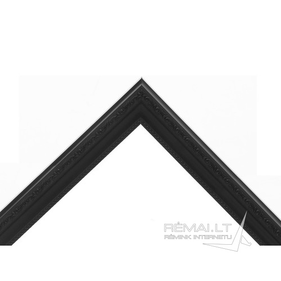 Juodas plastikinis rėmas, tinkamas paveikslams, grafikos kūriniams. Su ornamentais.