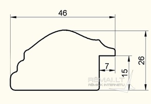 Elegantiškas, sendinto stiliaus, matinės aukso spalvos rėmas. Plataus, išgaubto profilio. Pro viršutinį aukso sluoksnį tarsi matyti karališkos raudonos spalvos ankstesnis dažų sluoksnis. Rėmas suteiks senovės prabangos Jūsų pasirinktam meno kūriniui.