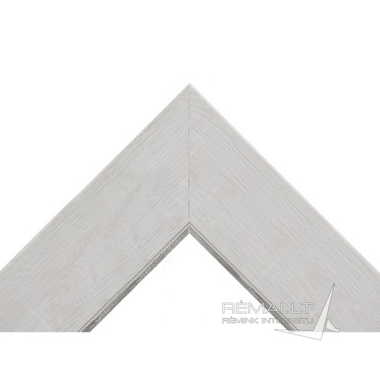 Solidus minimalistinio dizaino plastikinis rėmas. Platus, negilus profilis. Rėmas lygus, baltos spalvos, su natūraralios medžio faktūros imitacija ir šilto atspalvio sidabrine juostele ties vidine kraštine.