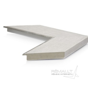 Solidus minimalistinio dizaino plastikinis rėmas. Platus, negilus profilis. Rėmas lygus, baltos spalvos, su natūraralios medžio faktūros imitacija ir šilto atspalvio sidabrine juostele ties vidine kraštine.