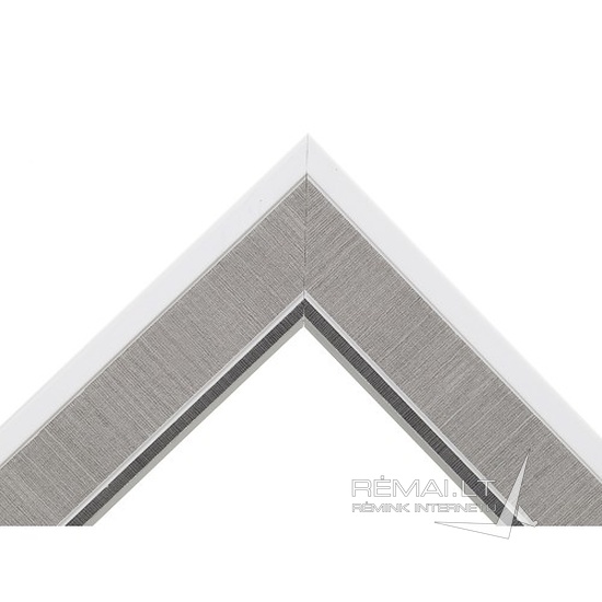 Baltai pilkas plastikinis rėmas, su tamsiai pilku, sidabriniu krašteliu. Pagal užsakymą gaminamas rėmelis supjaunamas ir sujungiamas pagal pageidaujamus matmenis.