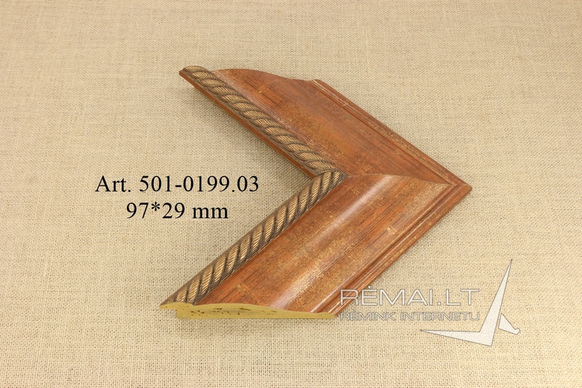 Elegantiškas sendintas rudos sspalvos platus, išgaubtas plastikinis rėmas, dekoruotas virvelės ornamentu ir natūralaus medžio raštais.