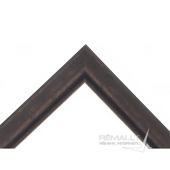 Rudas plastikinis rėmas, su medžio imitacija, tinkamas paveikslams, grafikos kūriniams. Su sidabrine juostele.